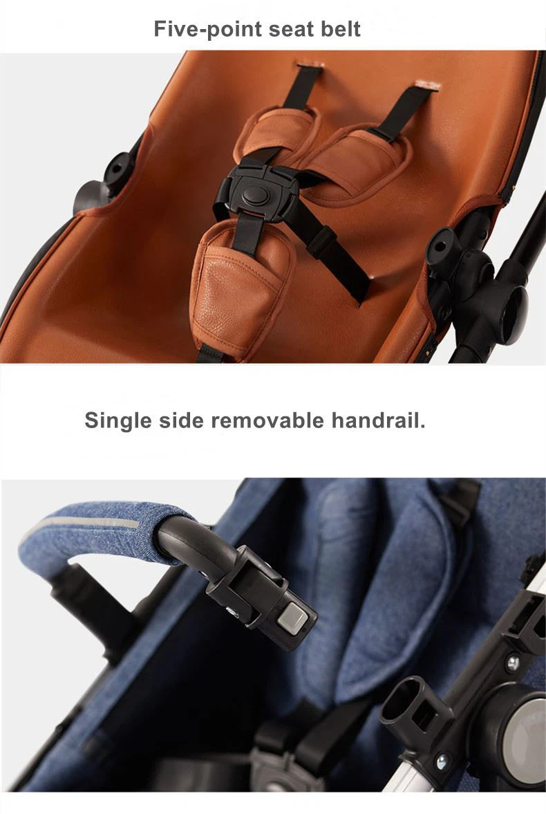 Chi tiết hơn: Ghế da, thoải mái và dễ chăm sóc, dây an toàn năm điểm, có thể được mở bằng một nút bấm. Mặt tay vịn có thể được loại bỏ. Giỏ quá khổ để lưu trữ đồ cho 2 em bé. Một chân phanh đôi, phanh nhạy cảm.