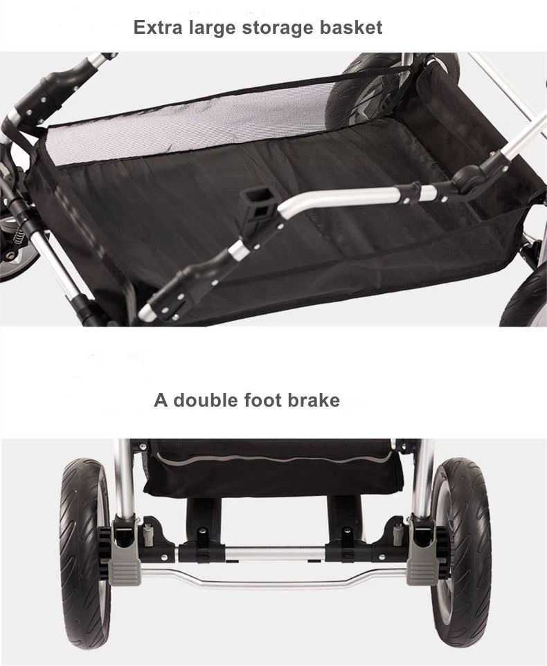 Xe đẩy đôi này được xây dựng phía trước và phía sau, thân xe đơn giản được trang bị hai bộ ghế. Ghế và giỏ ngủ là một miếng, giải nén chỗ ngồi để tháo đáy giỏ ngủ, chức năng 2 trong 1 .